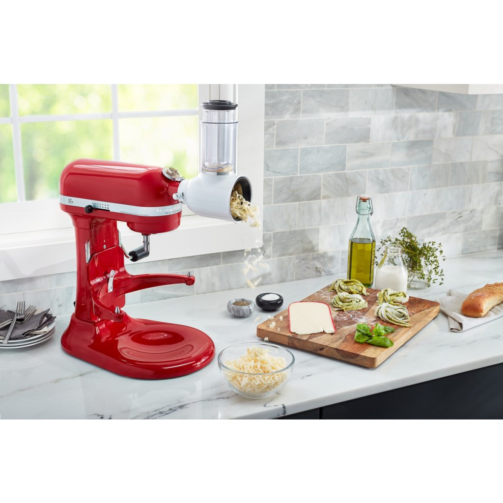 L'affettaverdure/tritatutto KitchenAid vi farà risparmiare molto lavoro e tempo. È progettato per grattugiare e affettare verdure, patate, cipolle, formaggio o pangrattato. Può anche gestire una varietà di frutta e noci o cioccolato. Include tamburo medio, grosso e per affettare.