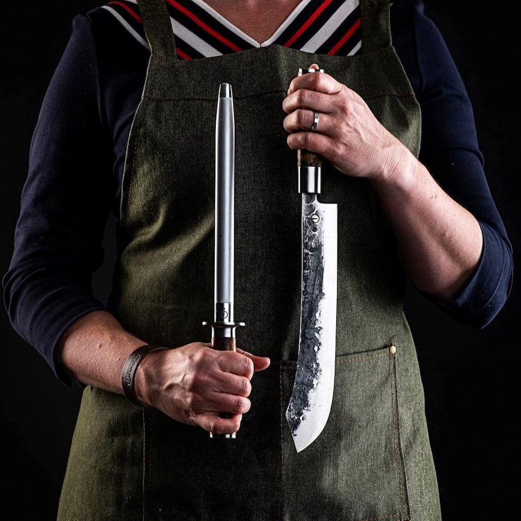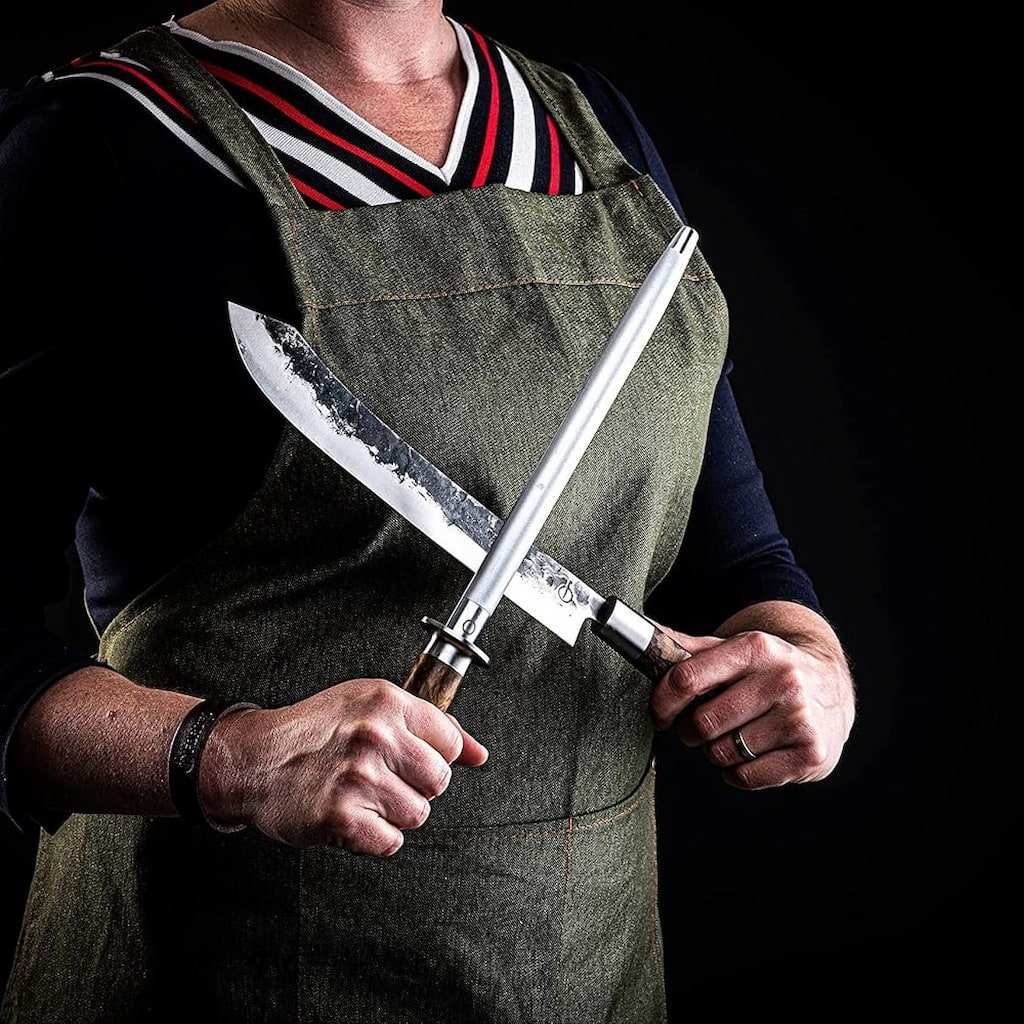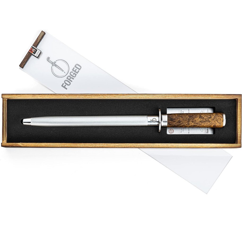 - l'elegante manico in legno di radica si distingue per il suo motivo naturale e conferisce all'affilatoio un aspetto rustico, assicurando una presa salda e un utilizzo confortevole anche in caso di uso prolungato