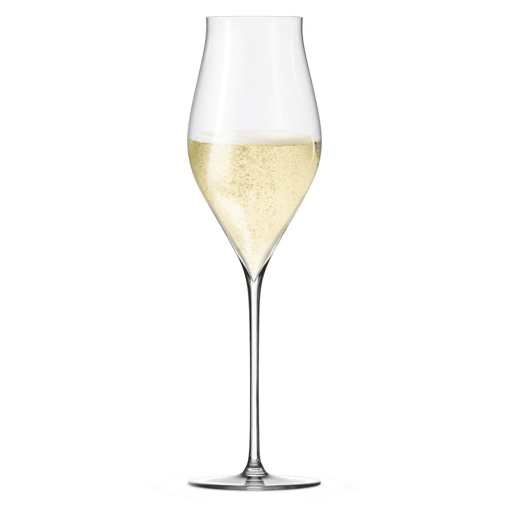- il corpo piĂą ampio del bicchiere favorisce una corretta aerazione e permette agli strati aromatici dello champagne di svilupparsi appieno