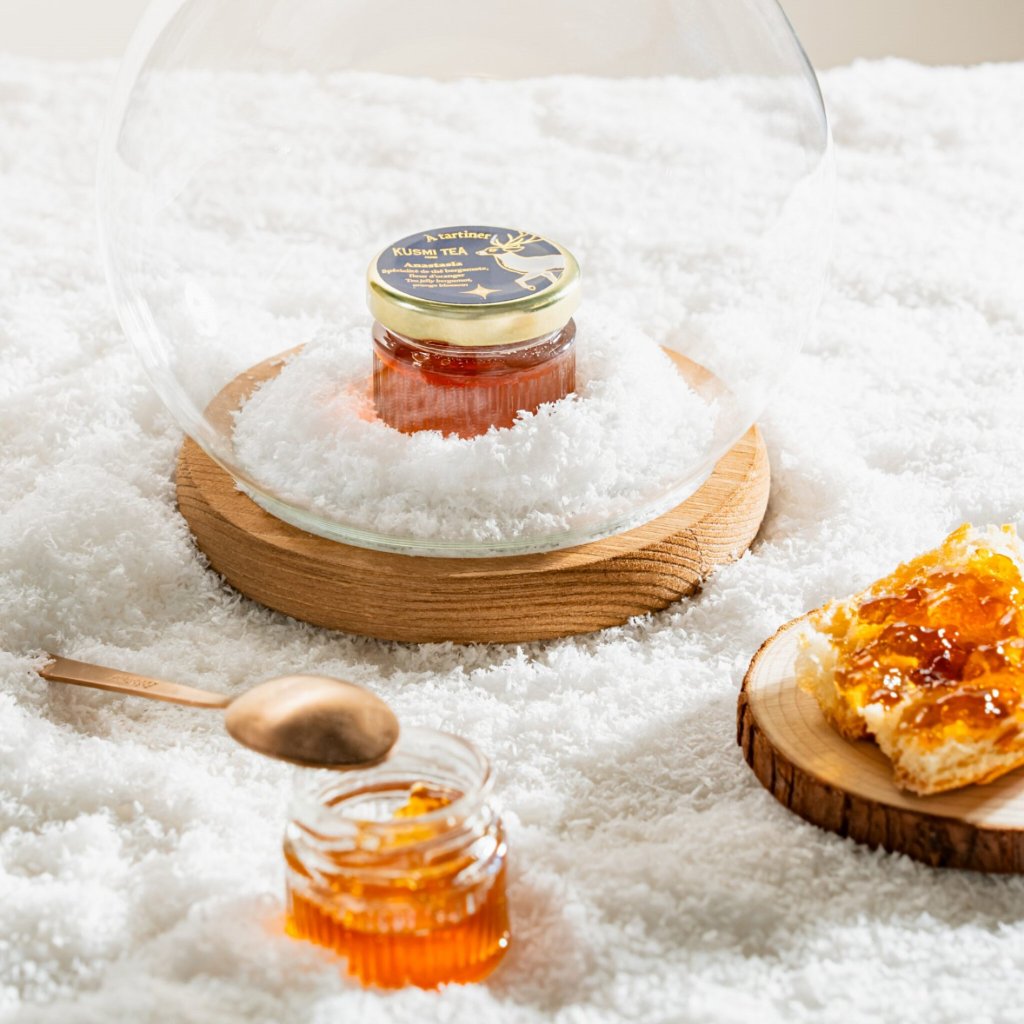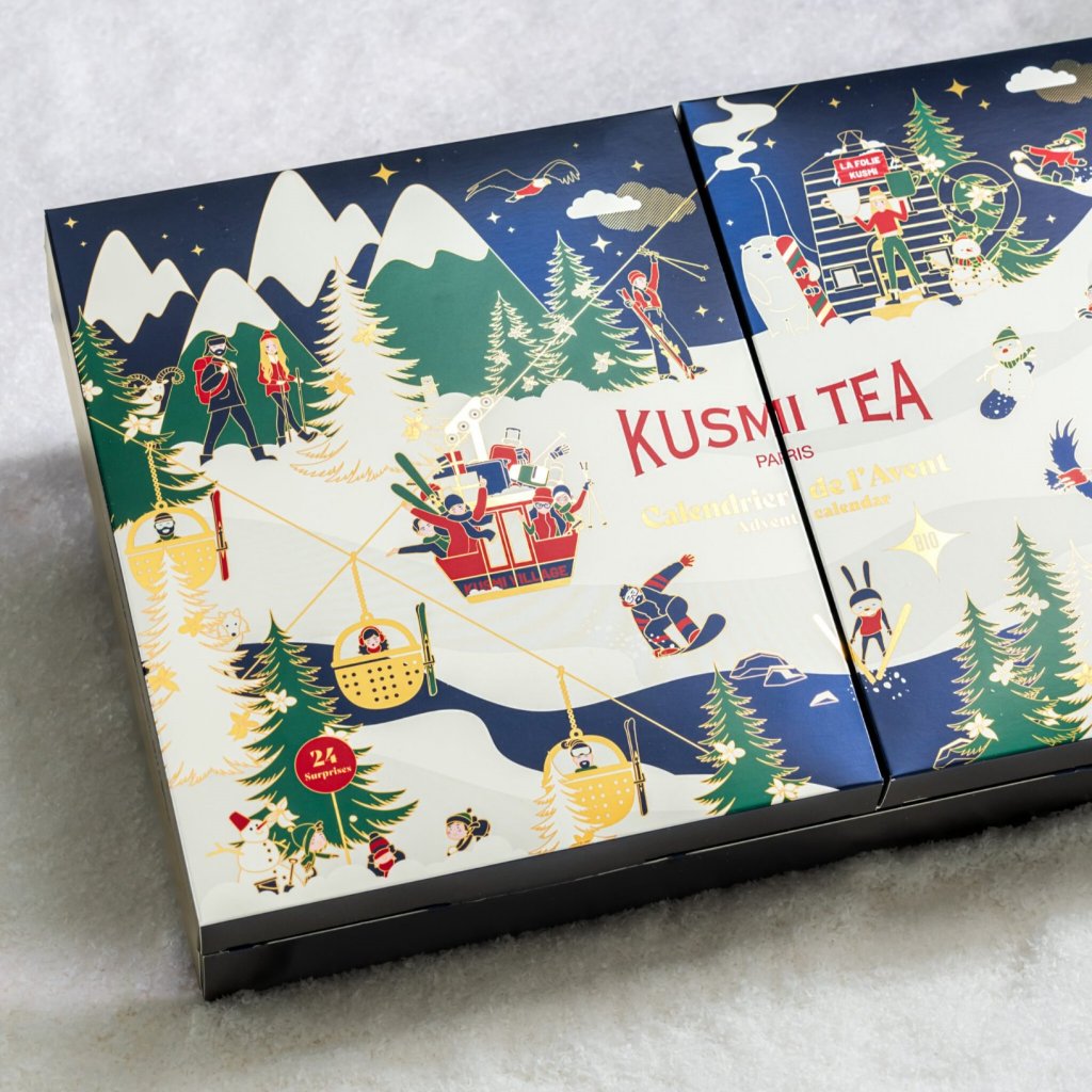 - ogni finestra contiene tè Kusmi alla frutta, nero, verde o bianco, in bustina o in barattolo