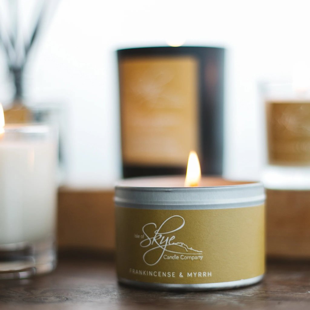 Candela profumata FRANKINCENSE & MYRRH, autonomia 30 ore, confezione da viaggio, Isle of Skye Candle Compan