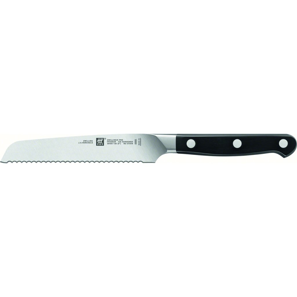 Il marchio di Solingen ZWILLING innova costantemente i suoi prodotti. Con un'esperienza di quasi tre secoli e l'aiuto dell'architetto e designer italiano Matteo Thun, l'azienda tedesca ZWILLING J. A. La serie di coltelli Henckels ZWILLING® Pro unisce l'aspetto tradizionale di un manico a tre rivetti con una forma innovativa della guardia del coltello. Questa protezione curva consente un comfort ineguagliabile quando si taglia con un movimento di cullamento.