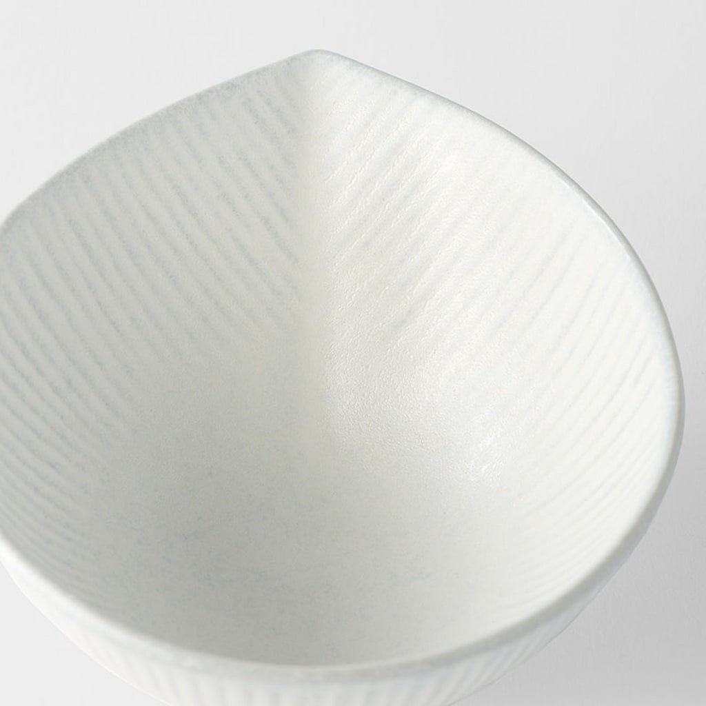 - La ciotola SNOW LEAF con un diametro di 9,5 cm e un volume di 100 ml unisce una delicata smaltatura bianca opaca a una forma organica che ricorda una piccola foglia innevata.