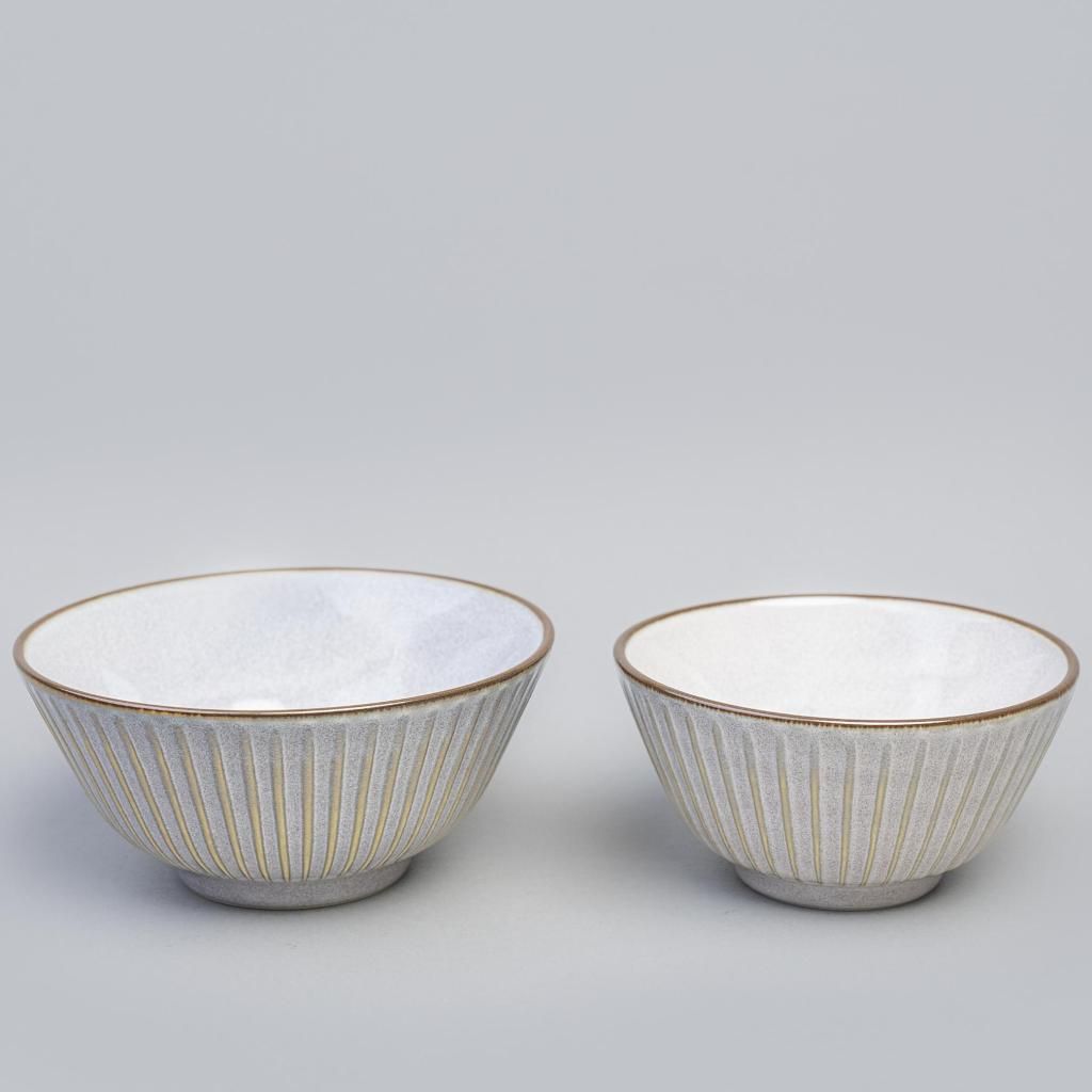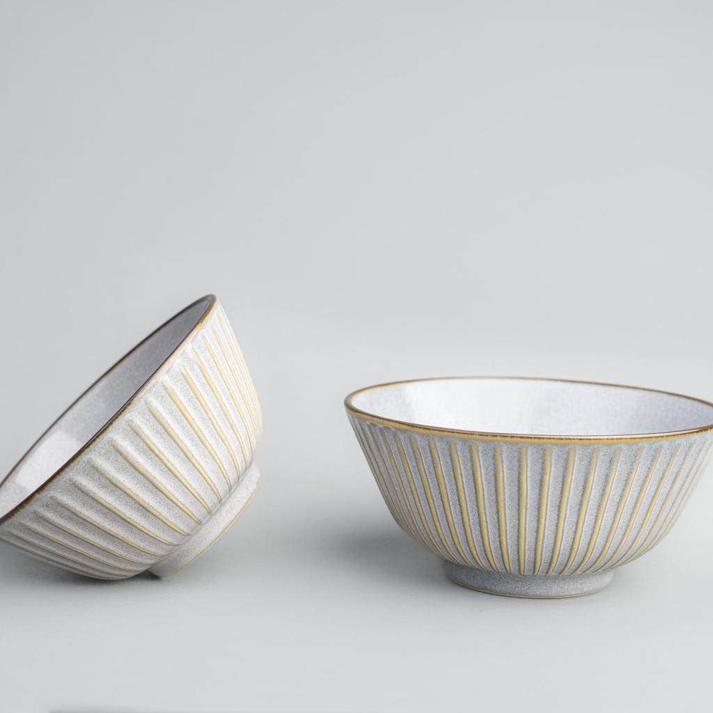 - Il tipico motivo sendan con sottili linee verticali crea un effetto plastico che conferisce profondità alla ciotola, mantenendo al contempo un carattere minimalista.