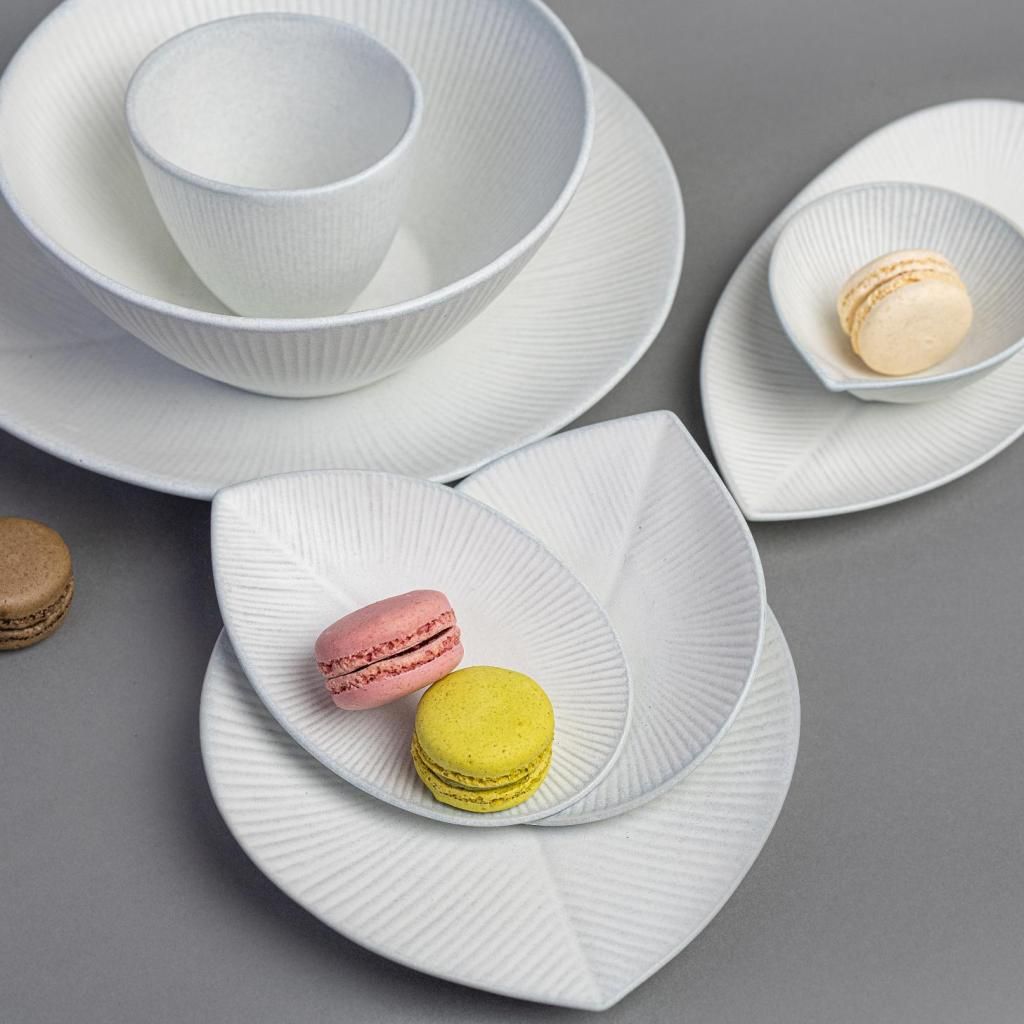 - La ciotola SNOW LEAF con un diametro di 13 cm e un volume di 300 ml presenta la morbidezza di una smaltatura bianca opaca e una struttura verticale che ricorda l'impatto silenzioso dei fiocchi di neve.