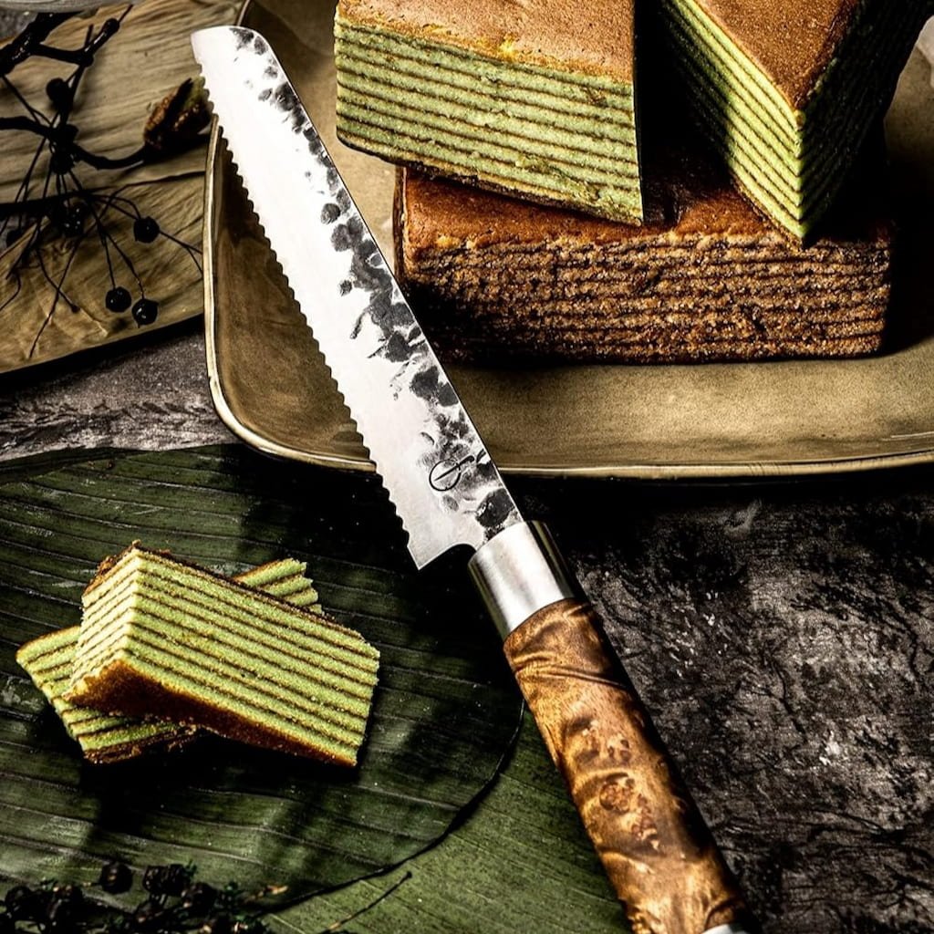 - cucina coltello da pane Forged VG10 è la scelta ideale per affettare pasticcini freschi, baguette croccanti e pagnotte soffici senza schiacciare o strappare la mollica