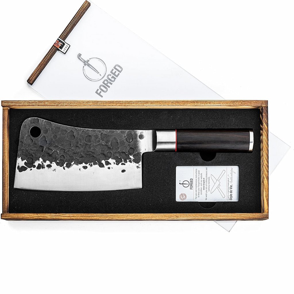 - coltello mannaia SEBRA da Forged è lo strumento ideale per tagliare il pollame, tritare pezzi di carne più grandi e lavorare verdure più dure