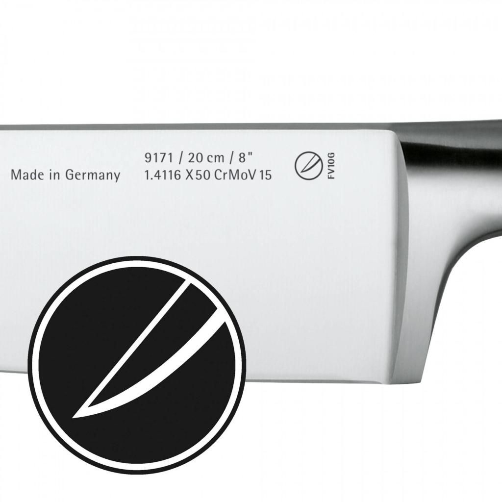 La serie di coltelli Spitzenklasse Plus dell'azienda tedesca WMF segue la tradizionale serie Spitzenklasse, che è un classico tra i coltelli da cucina. I manici rivettati in plastica speciale di alta qualità hanno bordi arrotondati e sono molto comodi da impugnare, a differenza della serie precedente. Naturalmente, questi coltelli di alta qualità hanno anche un'unione perfetta delle singole parti, che impedisce la formazione di depositi e batteri.