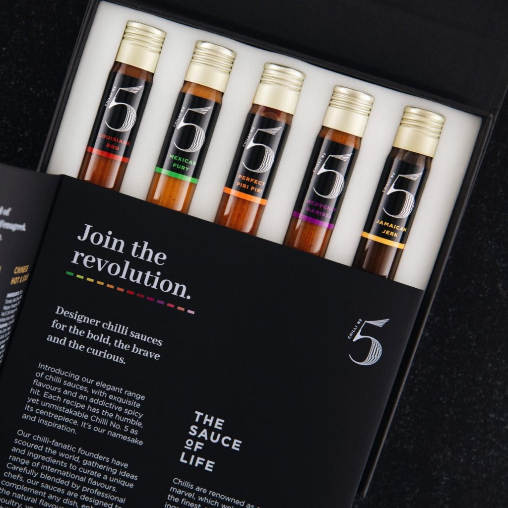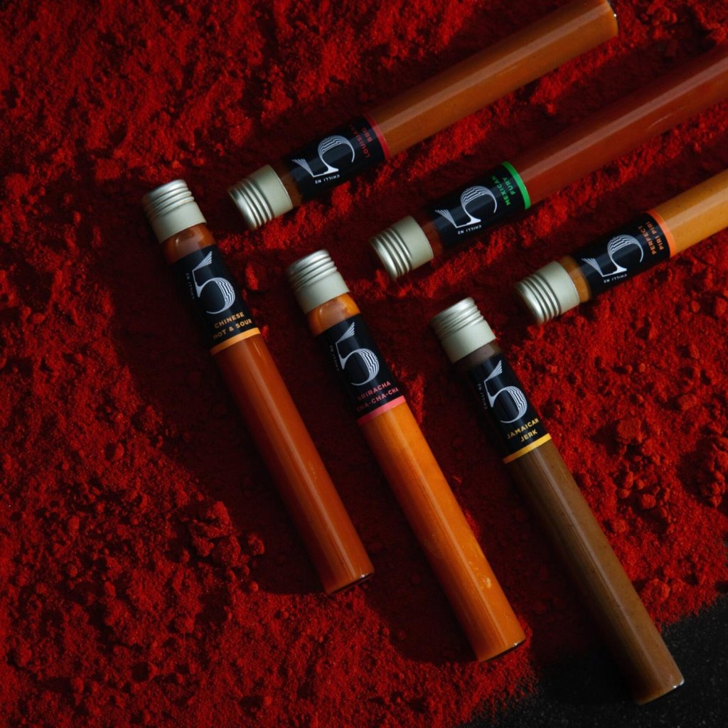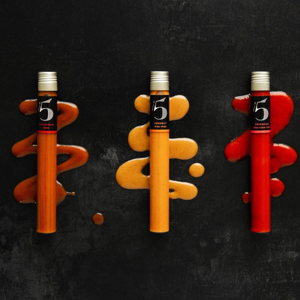 - Ogni salsa è realizzata con ingredienti freschi e contiene una miscela esclusiva di cinque peperoncini Chilli No5, che crea una base piccante ricca ed equilibrata.