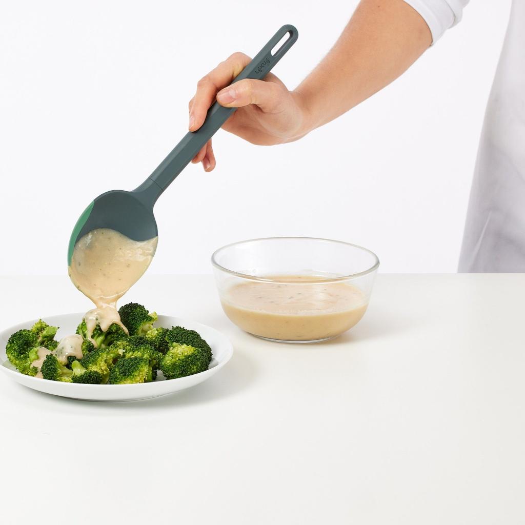 - Cucchiaio da cucina Lékué NON-SCRATCH è ideale per servire salse, zuppe e piatti solidi senza rovinarli.