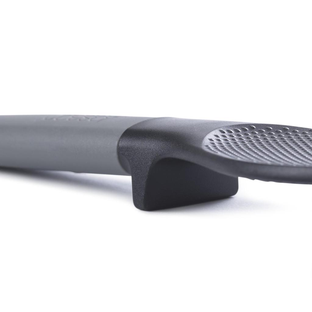 - Il supporto integrato nell'impugnatura aiuta a mantenere la testa del cucchiaio sollevata dalla superficie di lavoro, contribuendo a una cucina più pulita e igienica.