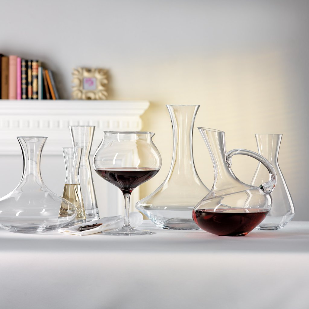 La vetreria Spiegelau offre un'ampia varietà di decanter, brocche e caraffe. Gli amanti del design sobrio e pulito, gli sperimentatori alla ricerca di pezzi audaci e nuovi e i tradizionalisti che apprezzano i classici, le stampe fatte a mano e l'artigianato troveranno pane per i loro denti.