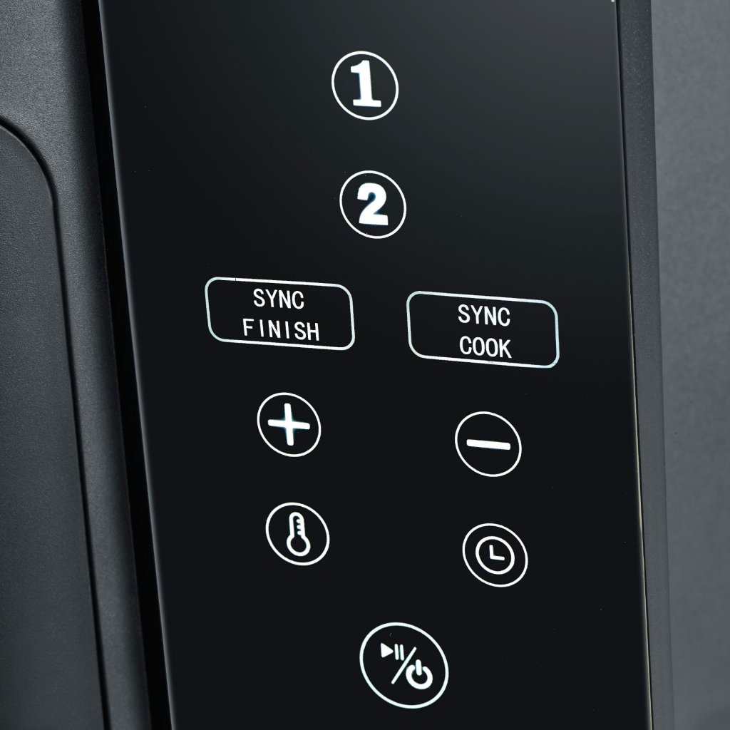 - la funzione Sync Cook consente di impostare in modo identico entrambe le camere per cucinare in modo efficiente grandi quantitĂ di un singolo piatto