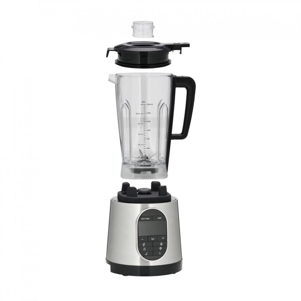Il frullatore da tavolo ad alta velocità è dotato di un interruttore a impulsi e di 6 programmi preimpostati per frullare, miscelare, frullare, tritare gli ingredienti, tritare il ghiaccio e pulire. È possibile scegliere tra sei velocità e il frullatore è piacevolmente silenzioso, nonostante i 36.000 giri al minuto. Le ventose sul lato inferiore del frullatore garantiscono un'adeguata stabilità e il contenitore di frullatura rimovibile con scala di misurazione è dotato di un coperchio con apertura integrata per il riempimento degli ingredienti e di un misurino trasparente.