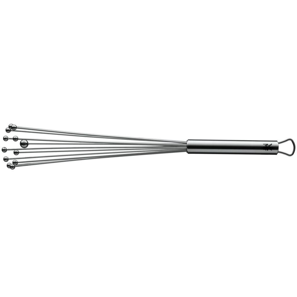Lo sbattitore Profi Plus da 32 cm è una novità della gamma di sbattitori. Le numerose sfere oscillanti portano molta aria nella massa mescolata, garantendo l'assenza di "grumi". Grazie all'oscillazione intrinseca delle sfere sui fili, la zuppa viene mescolata in un attimo e la crema viene eliminata in pochi secondi.I fili raggiungono i bordi inferiori della pentola o della ciotola e, grazie all'ampio raggio d'azione, non lasciano nulla sul fondo. Non c'è nulla di "appeso" tra i fili, il che rende la scopa facile e veloce da lavare e garantisce l'igiene.