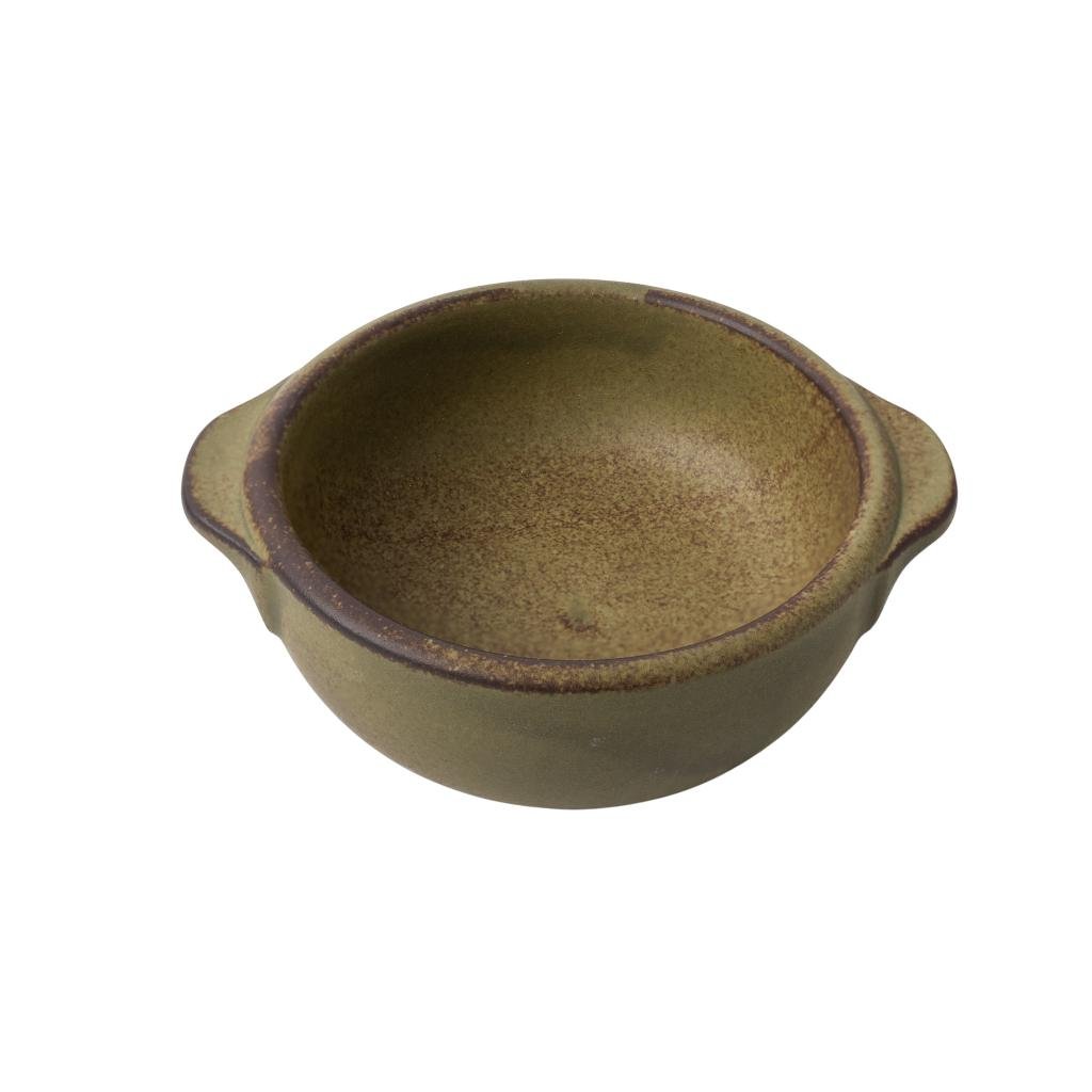 - La forma rotonda compatta con due manici lo rende facile da maneggiare e ha un aspetto naturale se servito direttamente in tavola.