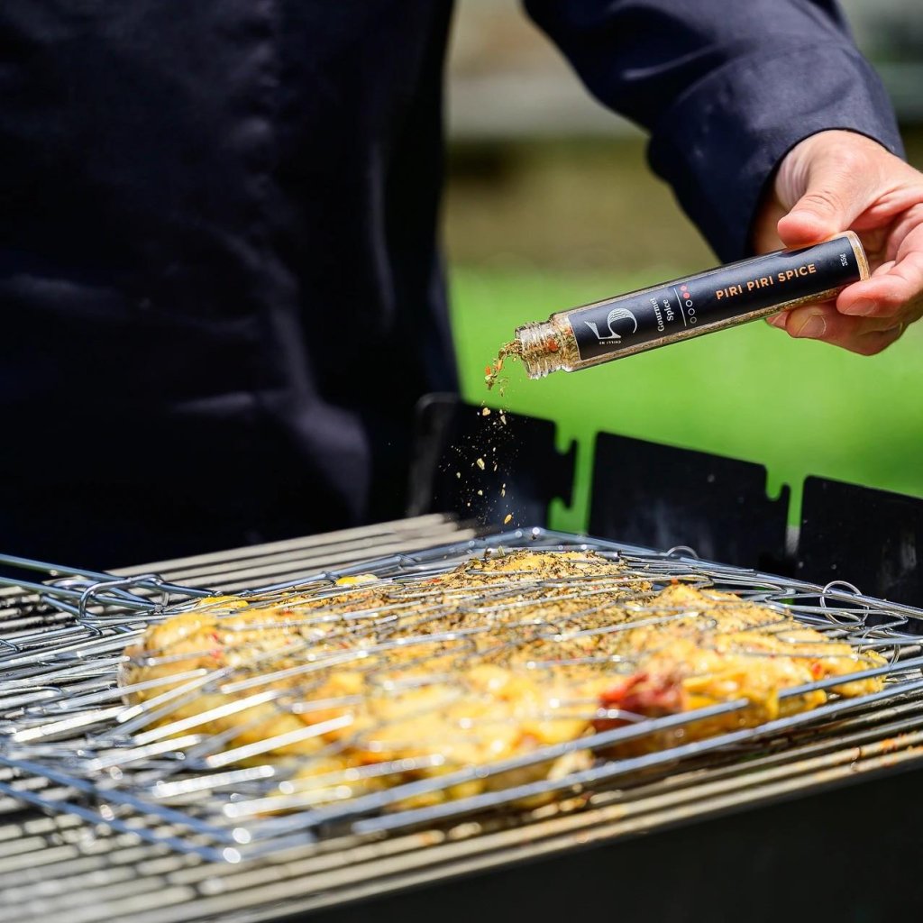 PIRI PIRI SPICE è esattamente il tipo di spezia che ti farà capire non appena la apri che non si tratterrà . Profuma di avventura, ha il sapore del coraggio e può risvegliare anche la carne che ha abbandonato da tempo ogni ambizione. Basta un pizzico e si ha la sensazione che la propria cucina si sia trasformata in un piccolo ristorante portoghese casalingo.