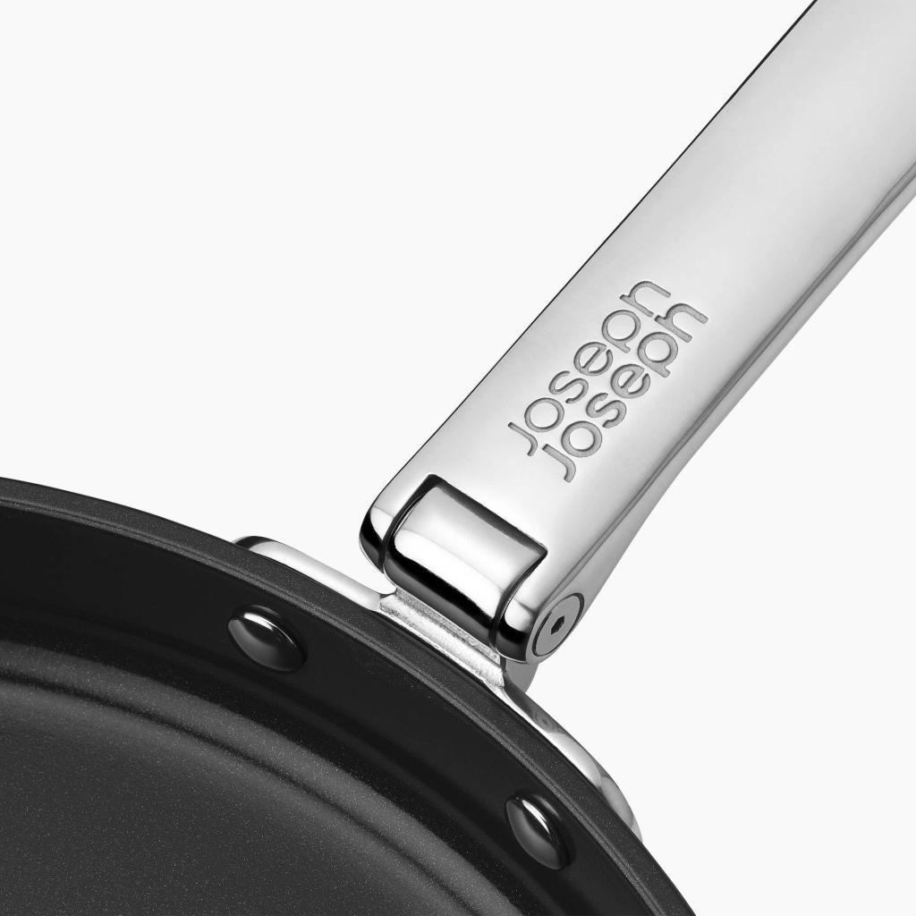 Pentole che comprendono le realtà della cucina moderna - Joseph Joseph SPACE. Durante la cottura, rimane stabile e sicura, pronta ad affrontare tutto, dalla colazione veloce alla cena improvvisata. Una volta arrivato il momento di riordinare, cambia carattere e si adatta discretamente allo spazio, senza occupare più posto del necessario. Cosa si può desiderare di più?