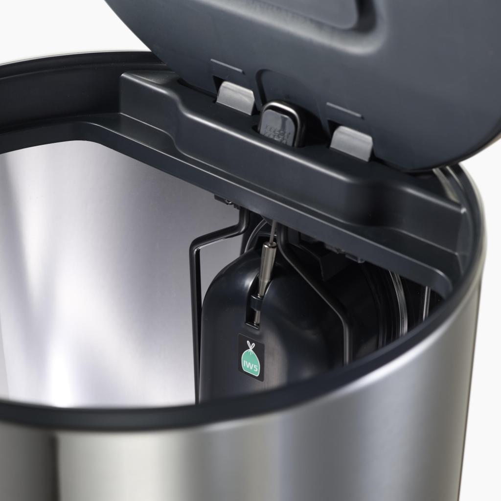 - Il cestino è compatibile con gli inserti Joseph Joseph IW5, che si adattano perfettamente al contenitore interno e facilitano la gestione dei rifiuti.
