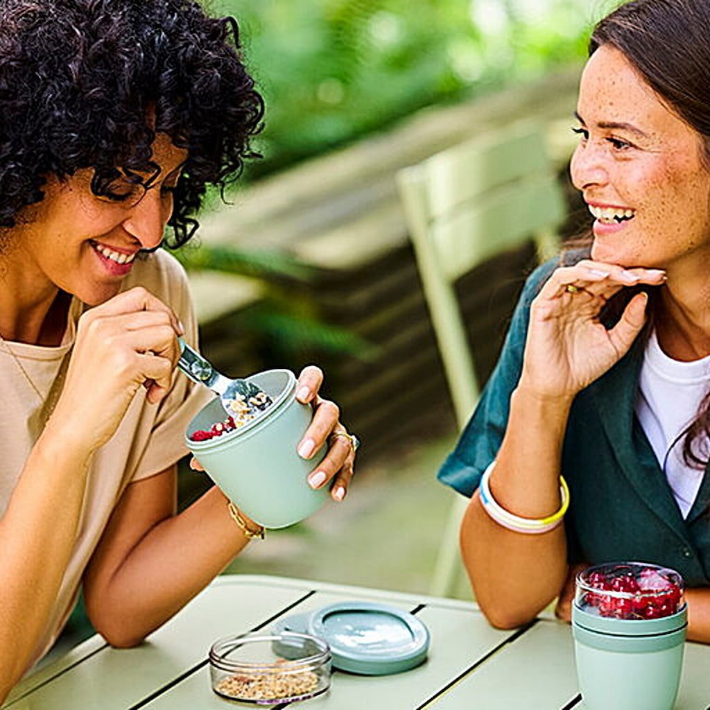 - il contenitore superiore trasparente da 200 ml è ideale per muesli, frutta o crostini croccanti senza il rischio di bagnarsi