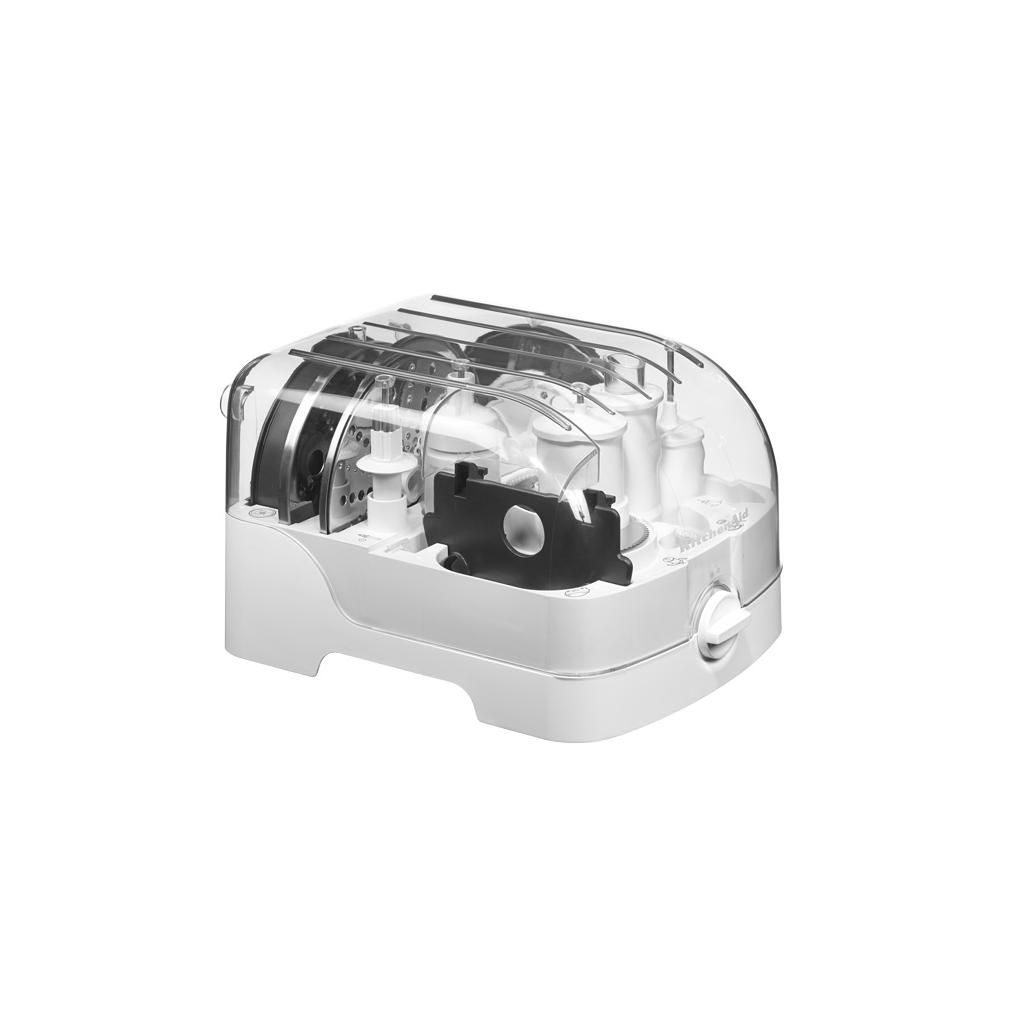 L'affettatrice a cubetti comprende un disco per affettare, una griglia da 8 mm, un coperchio e uno strumento per la pulizia, ed è particolarmente utile per le insalate.