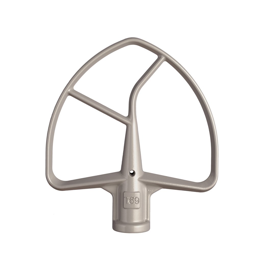 Lo sbattitore piatto è in alluminio rivestito con un rivestimento antiaderente in nylon. Si utilizza per impasti pesanti come pastelle per torte e dolci, glasse o per la preparazione di purè di patate. Lavabile in lavastoviglie.