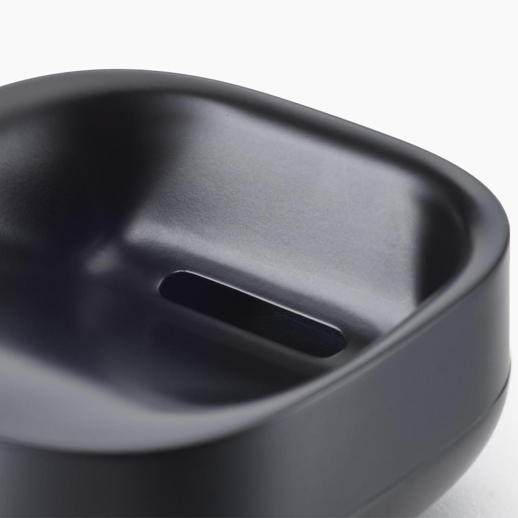 - La forma minimalista consente di riporre una saponetta di dimensioni standard senza che il portasapone occupi troppo spazio sul bordo del lavandino.