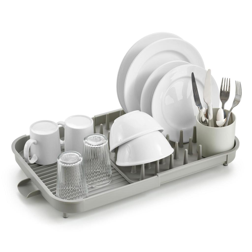- La parte piana estensibile è ideale per sgocciolare tazze, ciotole o bicchieri che necessitano di un supporto stabile e solido.