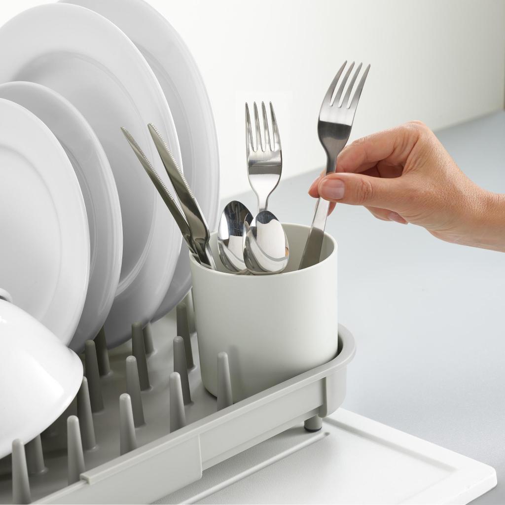 - Lo scolapiatti è adatto sia per famiglie piccole che numerose, poiché la sua capacità può essere facilmente adattata alla quantità attuale di stoviglie.