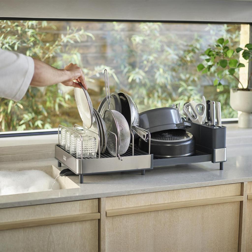 - Scolapiatti Joseph Joseph EXTEND MAX offre ampio spazio per asciugare le stoviglie e, grazie al suo design espandibile, si adatta facilmente alla quantità di stoviglie lavate.