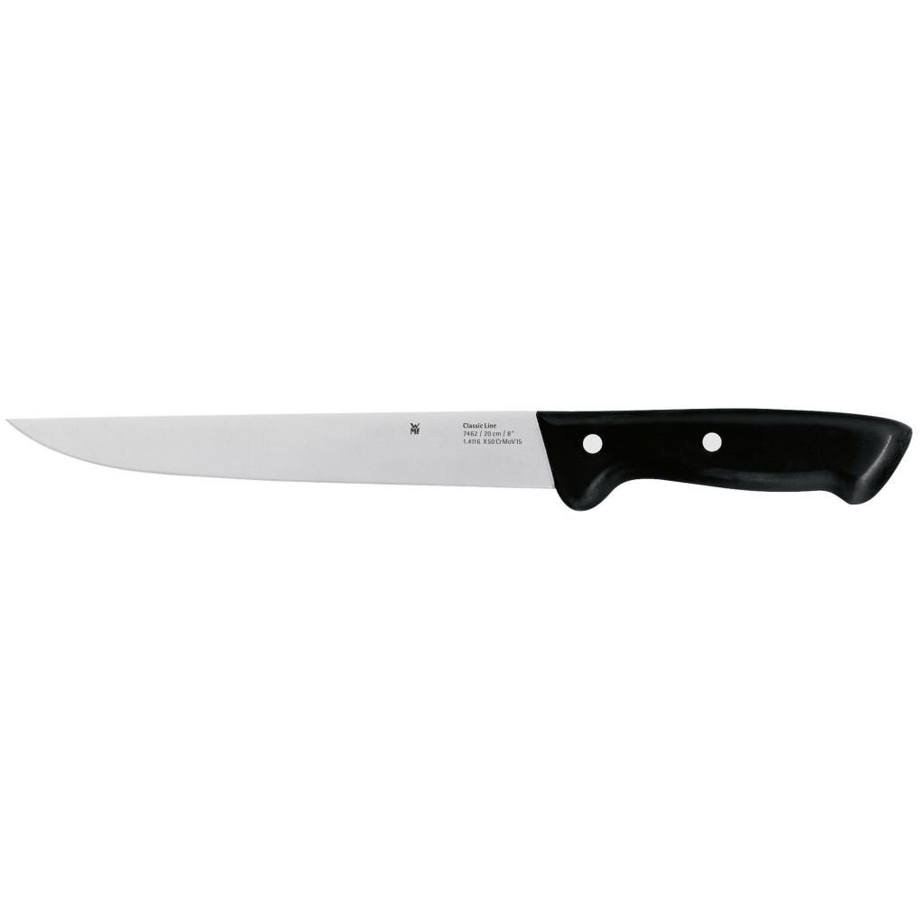 Il coltello da pane della Linea Classic ha una lama lunga, spessa e seghettata. Tagliare delicatamente la crosta dura e tagliare il pane a fette. Il coltello da pane taglia anche la frutta senza danneggiarne la consistenza. Grazie alla lama seghettata, il coltello da pane si affetta in modo diritto e "taglia" qualsiasi cosa si voglia affettare senza che la lama scivoli sulla superficie. La lama seghettata non ha bisogno di essere affilata.