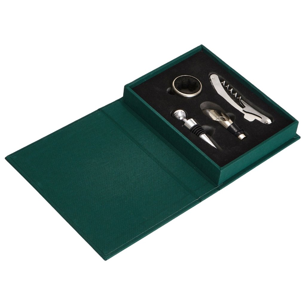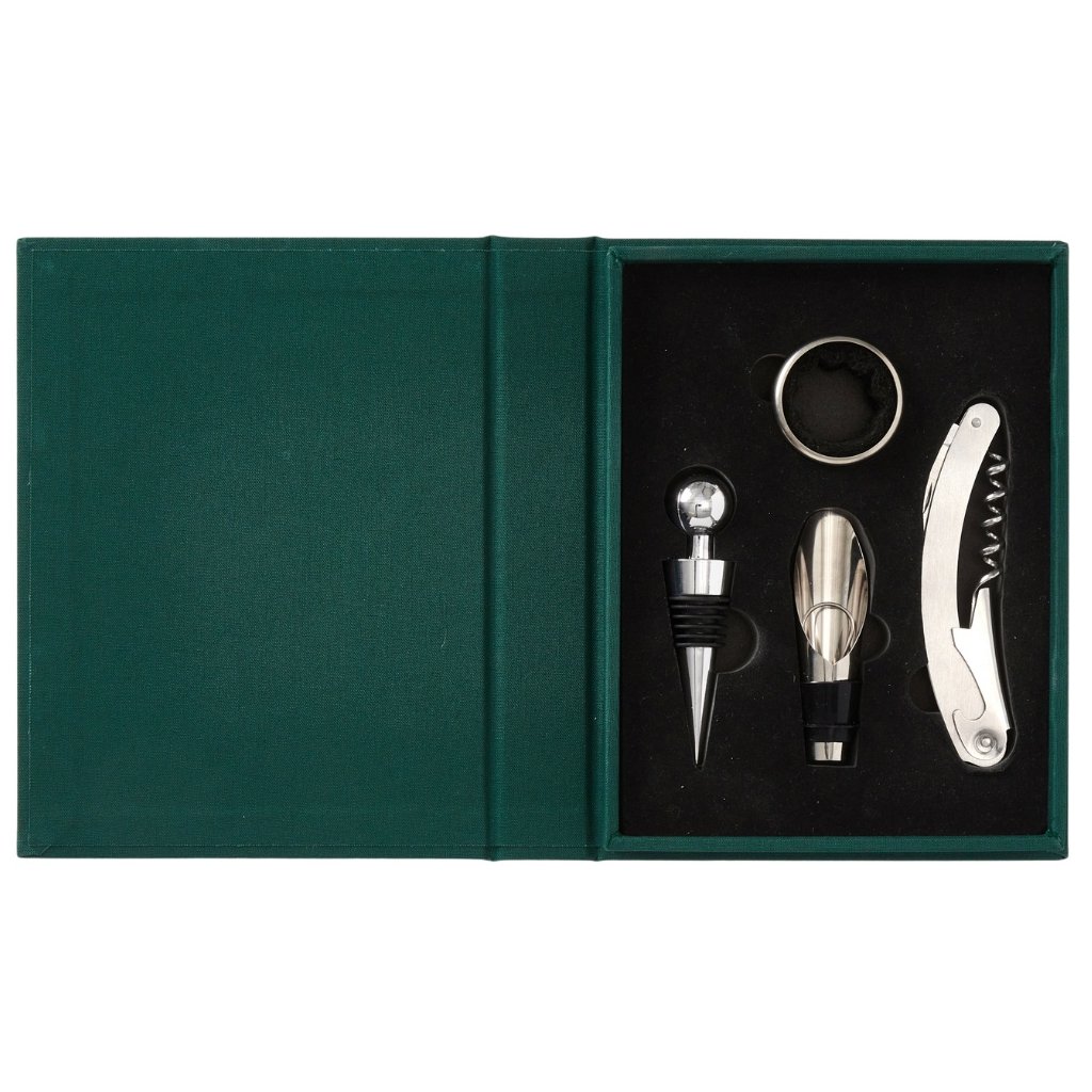 - il set da vino comprende apribottiglie, tappo, imbuto e anello