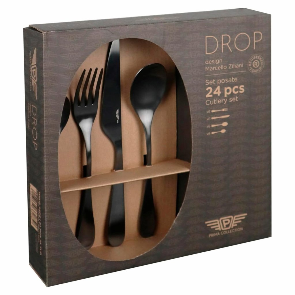 Set di posate da tavola DROP CARBON, set di 24 pz, nero, Pintinox