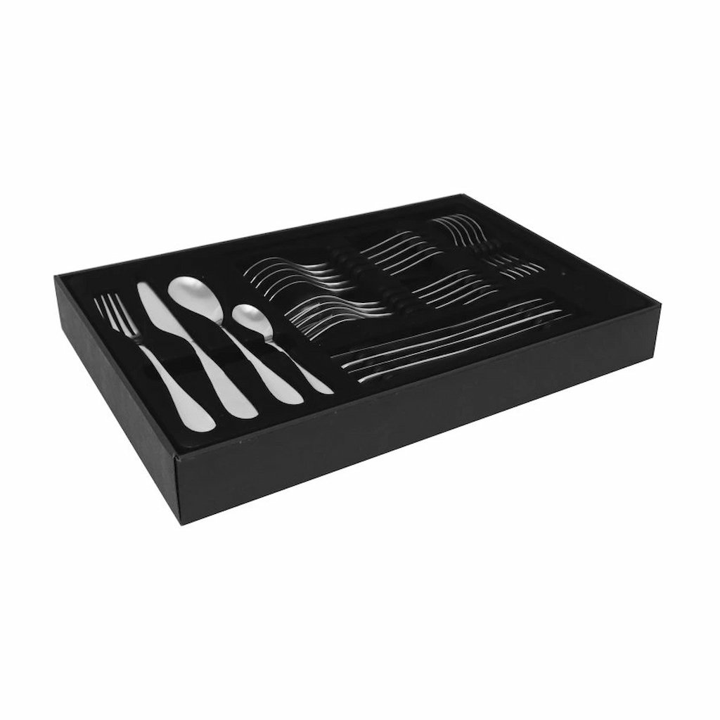 - set di posate da tavola per 6 persone comprende 24 pezzi: 6 forchette, 6 coltelli, 6 cucchiai e 6 cucchiaini, ideali per l'uso quotidiano e per le occasioni festive
