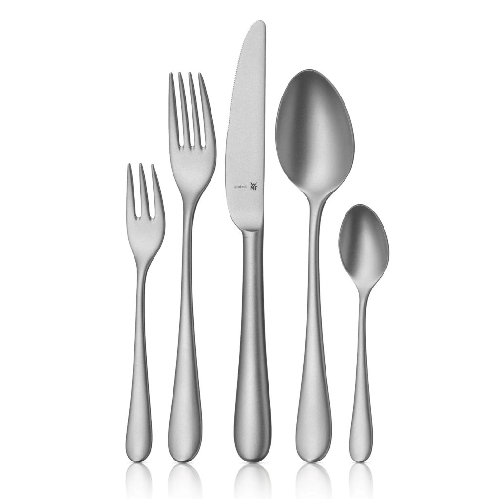 - la superficie finemente sabbiata conferisce alle posate un aspetto opaco e al tempo stesso moderno e sobrio