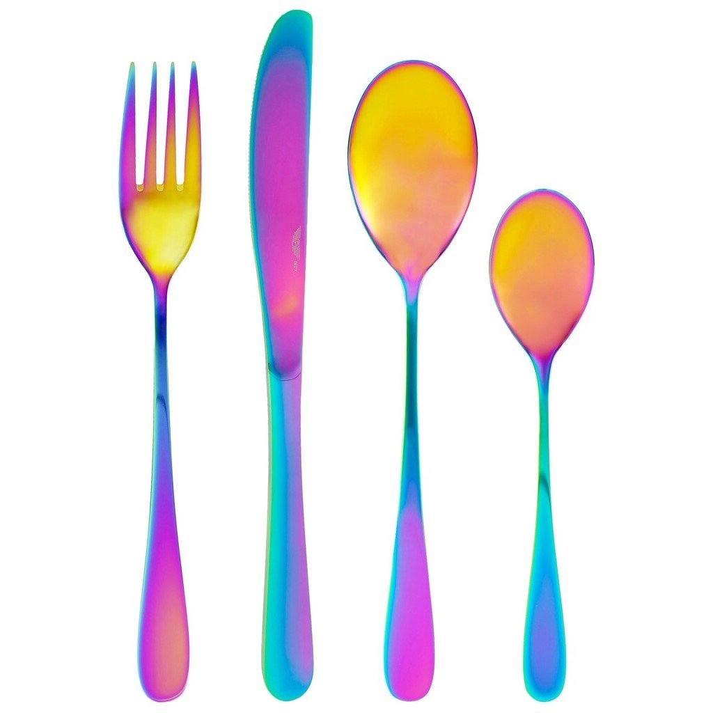 - set di posate da tavola PRINCESS RAINBOW colpisce per il suo caratteristico aspetto arcobaleno, che illuminerĂ qualsiasi tavola e le conferirĂ un'atmosfera unica.