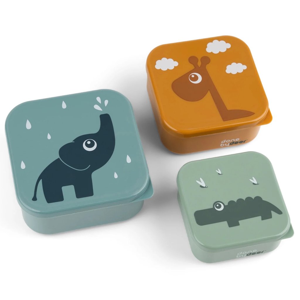 Set pranzo al sacco per bambini DEER FRIENDS, set di 3 pz, blu, senape e verde, Done by Deer