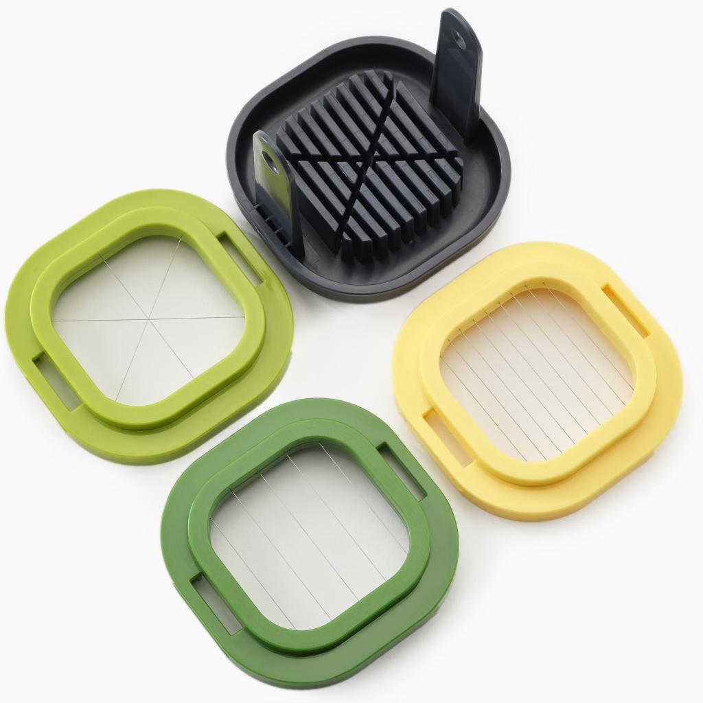 - Il set include tre diversi utensili da taglio in acciaio inossidabile che consentono di creare spicchi o affettare gli alimenti in fette più spesse o sottili, a seconda delle necessità.