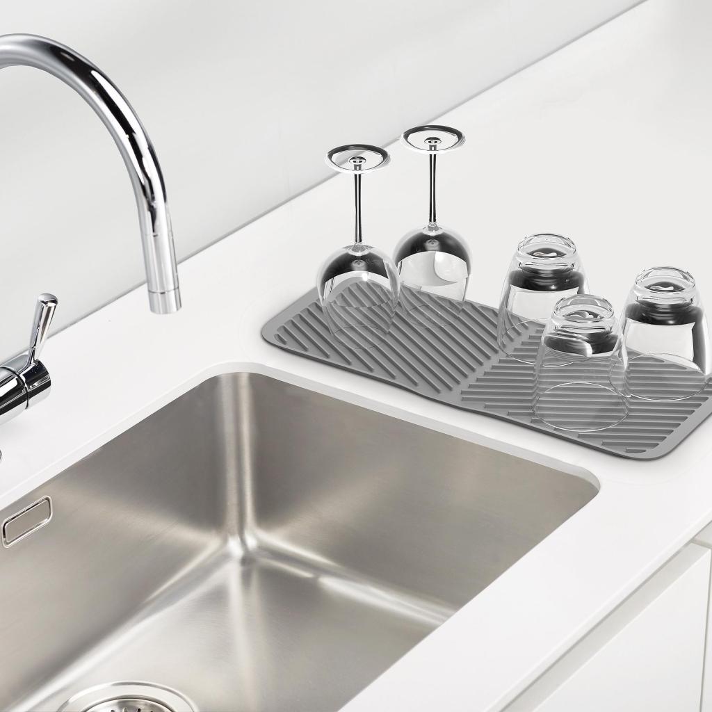 - Il tappetino è ideale per asciugare bicchieri da vino, tazze, piatti e piccoli utensili da cucina dopo il lavaggio a mano.