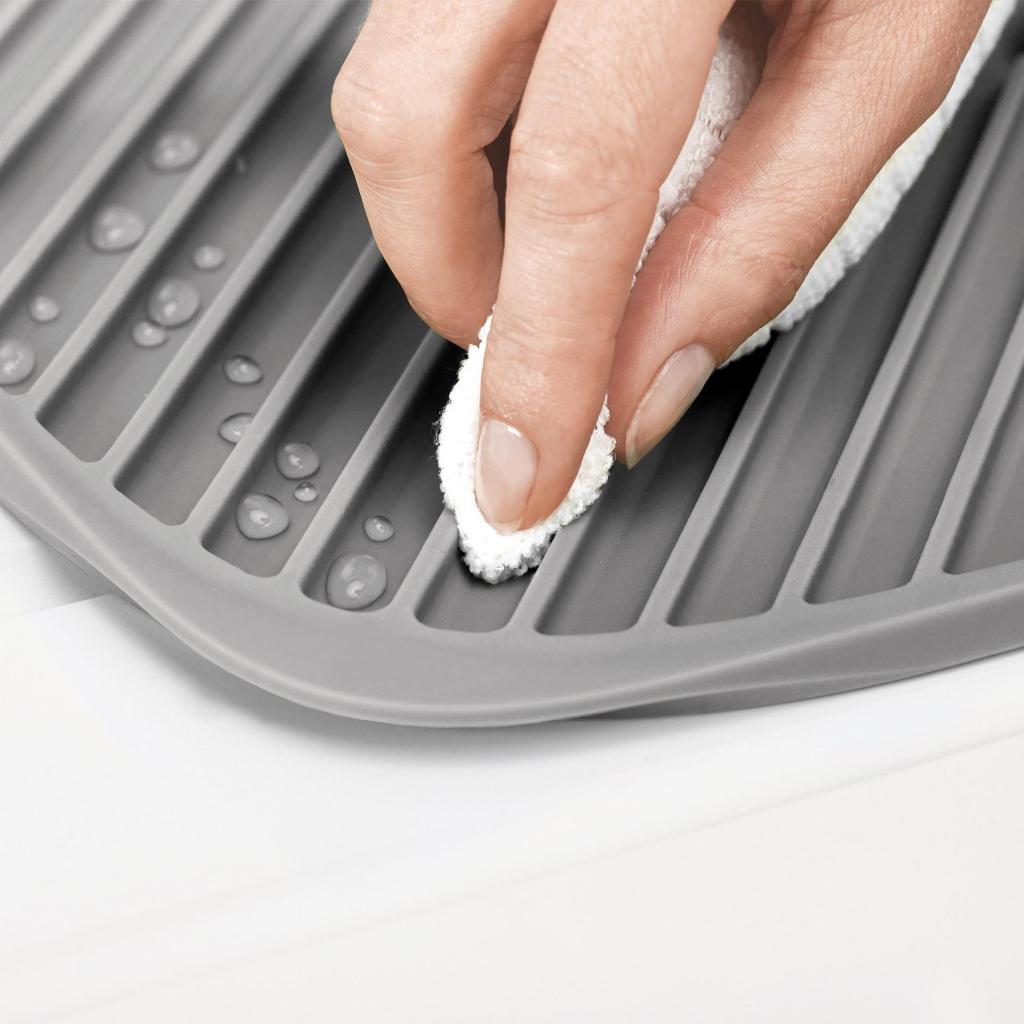 - È possibile rimuovere facilmente l'acqua accumulata afferrando il tappetino dagli angoli opposti e piegandolo naturalmente verso il lavandino.