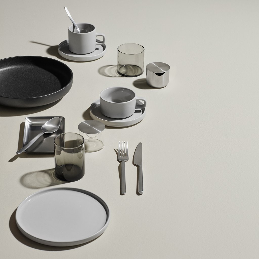 Tazza da caffè con piattino PILAR 200 ml, grigio chiaro, Blomus