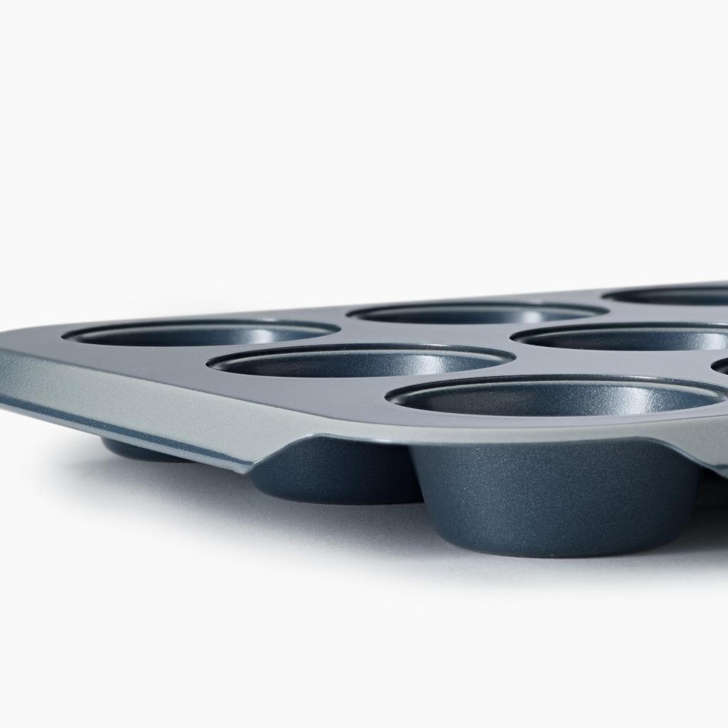 - La superficie antiaderente a doppio strato consente di rimuovere facilmente i muffin cotti senza che si attacchino e facilita la pulizia rapida dopo la cottura.