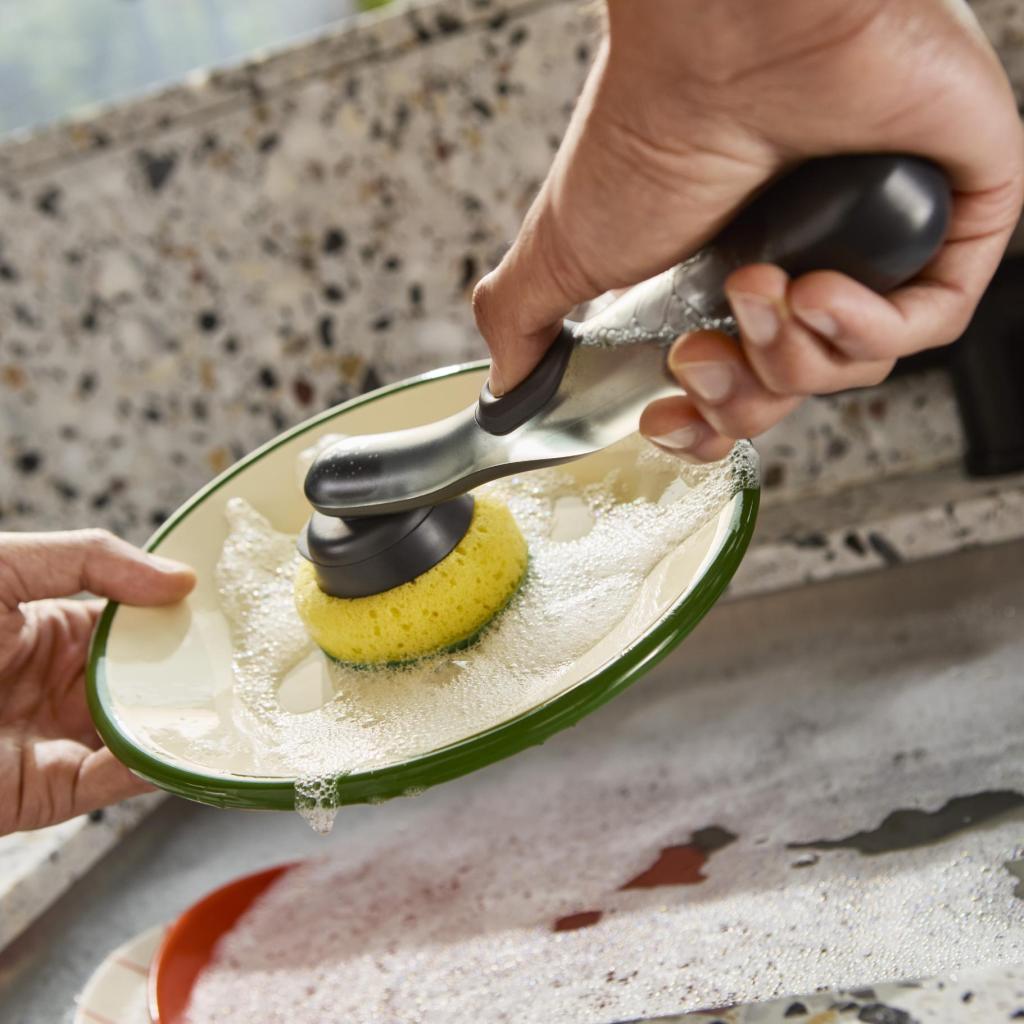 - La forma circolare della testina facilita la pulizia anche nelle parti curve delle stoviglie.