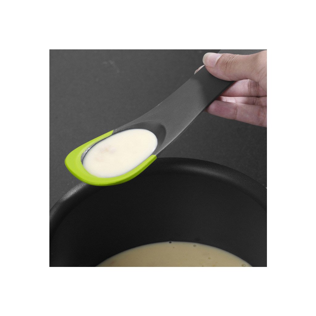 Affettare, raccogliere, scolare, girare, pulire e spalmare..... ogni attività in cucina richiede un utensile speciale. Tuttavia, il creativo Derek Roberts ha tentato una rivoluzione e ha progettato uno strumento che si impadronirà della vostra cucina. Lasciate che un po' di semplicità visionaria pervada la vostra casa. Il bordo seghettato taglia gli ingredienti morbidi e i pezzi di carne arrosto, il cucchiaio forato raccoglie e filtra, mentre l'altro lato funziona benissimo come giratutto. L'unica sorpresa è il cucchiaio pieno sull'altro lato del manico, che può essere utilizzato come spatola o strumento di lubrificazione. Viva il minimalismo!