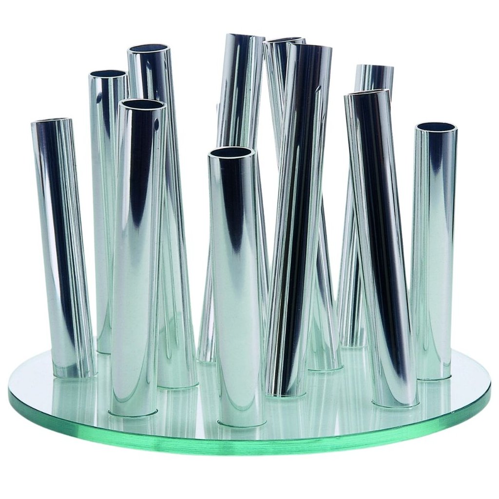 - i tubi in alluminio lucidato si ergono a diverse angolazioni e hanno 3 diverse altezze