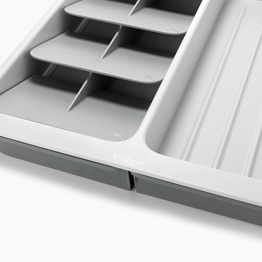 - L'organizer per cassetti Joseph Joseph DRAWERSTORE aiuta a organizzare in modo ordinato posate e utensili da cucina nel cassetto della cucina.